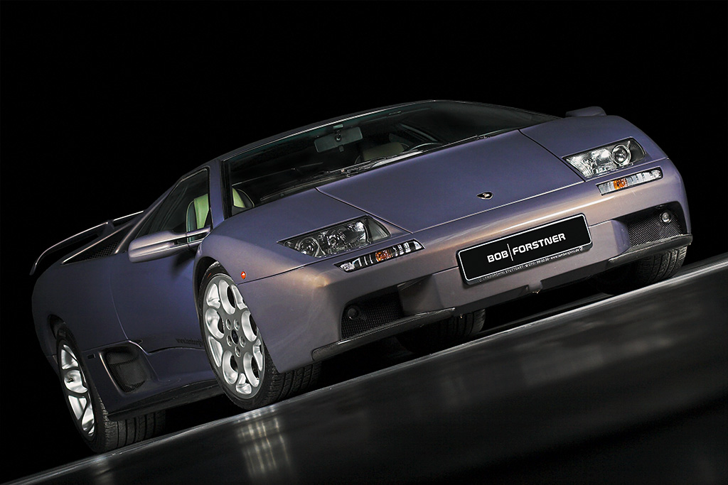 Auch ein Diablo Roadster der ersten Baureihe mit einer besonderen Farbe steht in den Hallen. Hinter der Bezeichnung