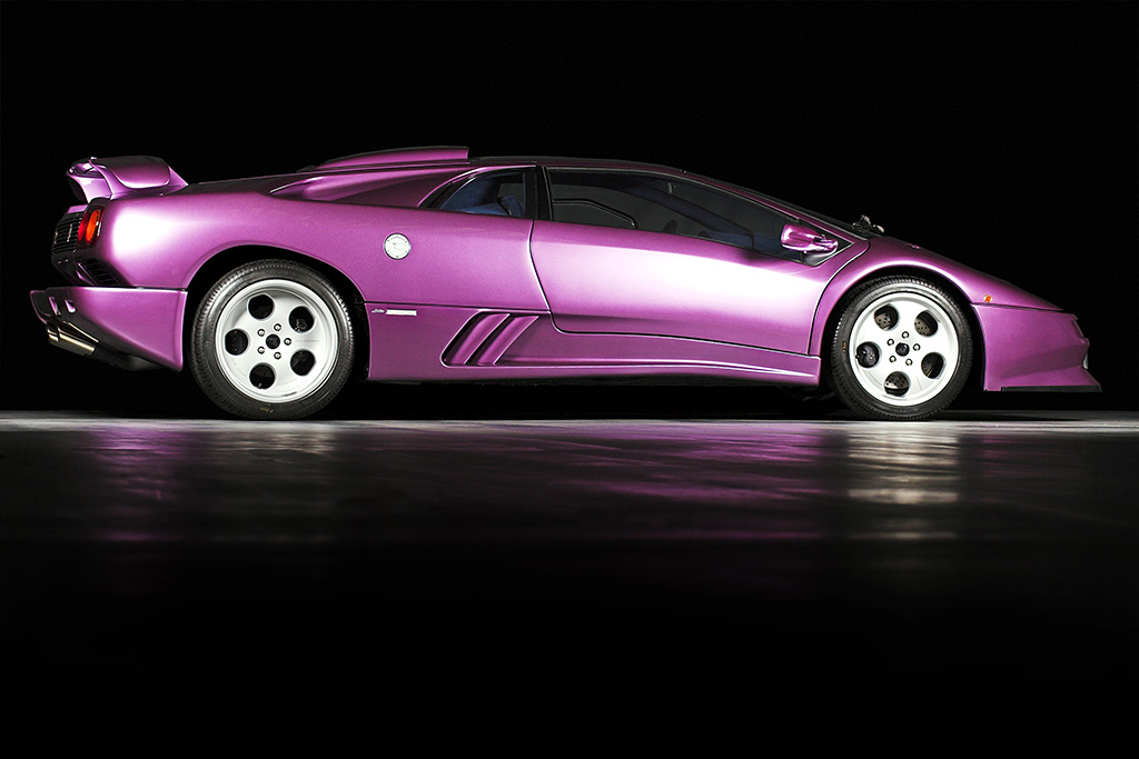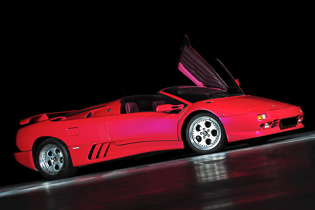 „Rosso Roadster“ verbirgt sich die Pink-Metallic-Lackierung des Roadsters. Innen besticht er durch lila-pinkes Leder. Somit ist dieser Diablo Roadster eine echte Rarität. Dieses Auto muss man einfach mit den eigenen Augen beäugen, bewundern und bestaunen.