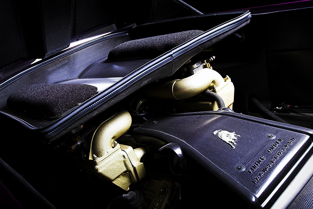 Daneben steht ein Diablo SE 30 Jota. Hierbei handelt es sich um einen von nur 12 produzierten weltberühmten Diablo SE 30 Jotas. Diese Kleinstserie zeichnet sich durch ein optimiertes Motorenmanagement aus, sowie eine komplett überarbeitete Luftansaugung, was zu einem beachtlichen Leistungszuwachs von 75 PS führt.