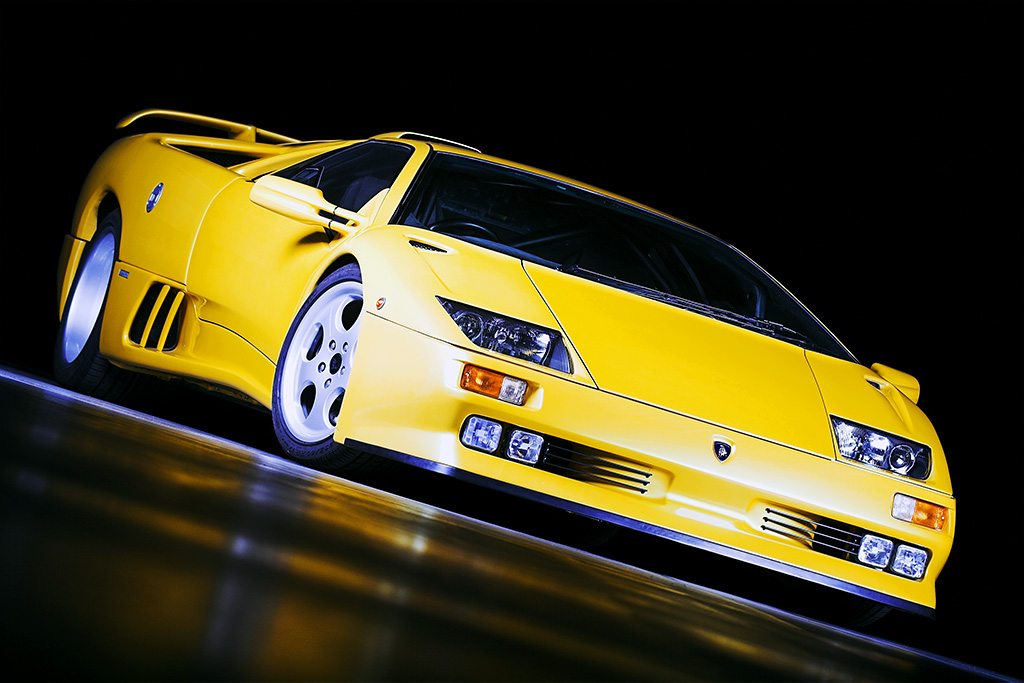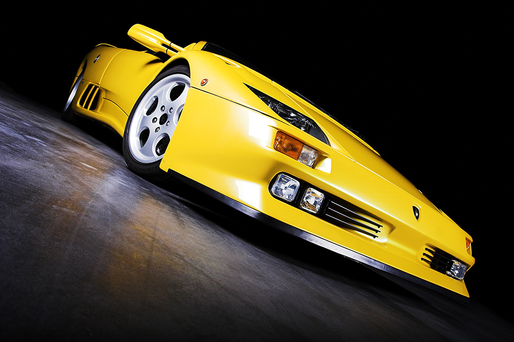 Daneben steht ein Diablo SE 30 Jota. Hierbei handelt es sich um einen von nur 12 produzierten weltberühmten Diablo SE 30 Jotas. Diese Kleinstserie zeichnet sich durch ein optimiertes Motorenmanagement aus, sowie eine komplett überarbeitete Luftansaugung, was zu einem beachtlichen Leistungszuwachs von 75 PS führt.