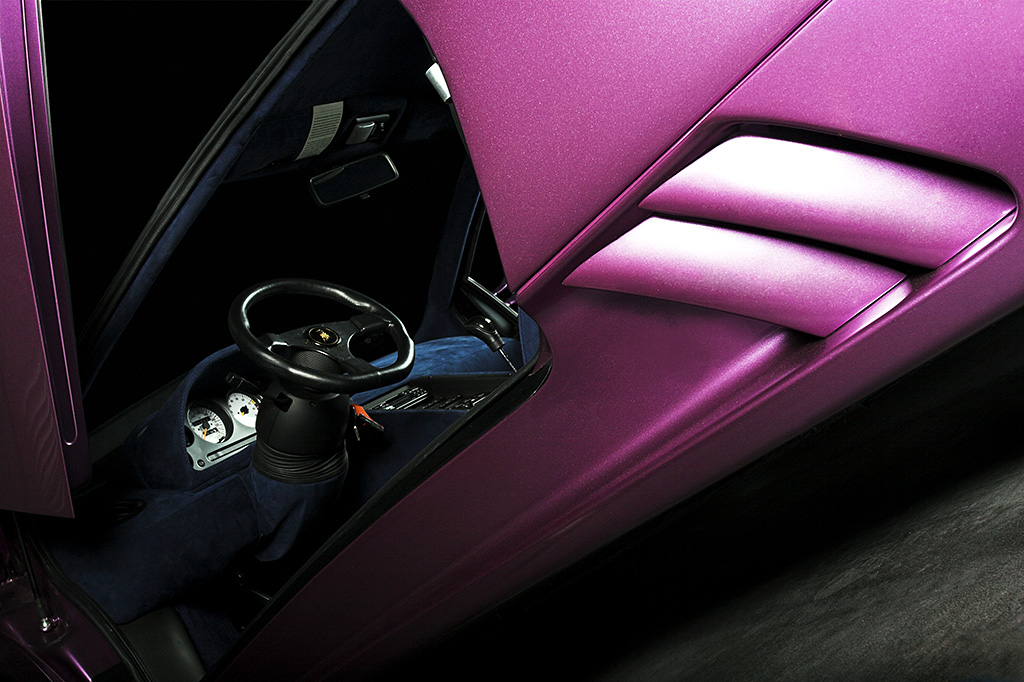 „Rosso Roadster“ verbirgt sich die Pink-Metallic-Lackierung des Roadsters. Innen besticht er durch lila-pinkes Leder. Somit ist dieser Diablo Roadster eine echte Rarität. Dieses Auto muss man einfach mit den eigenen Augen beäugen, bewundern und bestaunen.