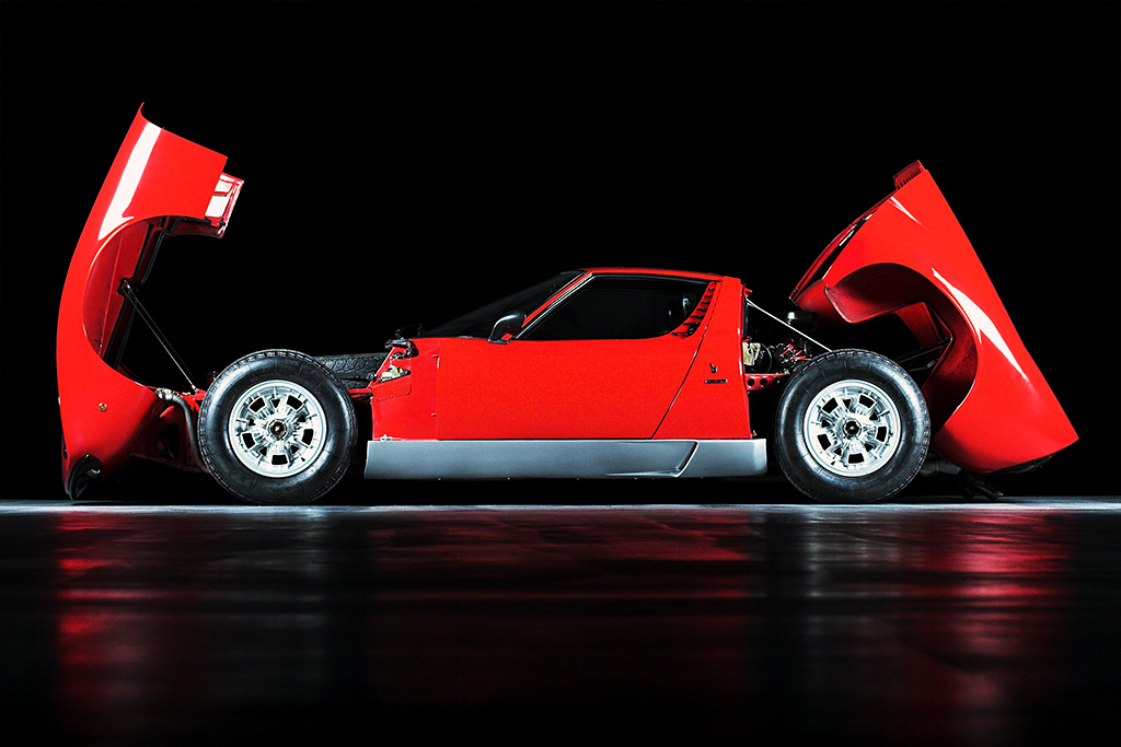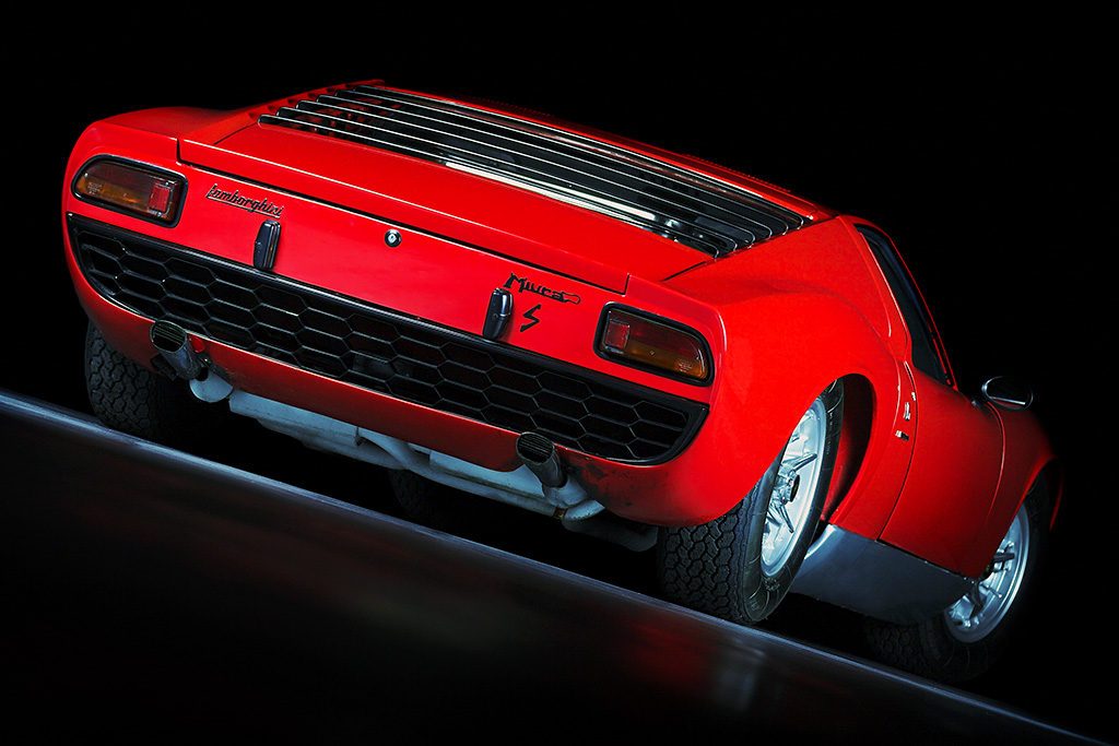 Auf dem Catwalk – der aus dem berühmten, ehemaligen Münchner Lamborghini Showroom am Flughafen stammt – steht auch der legendäre Lamborghini Miura, der seine Kurven gekonnt zur Schau stellt. Ein Countach 5000 S der früheren Baureihe ergänzt die Sammlung ebenso wie drei Sondermodelle dieser Baureihe.